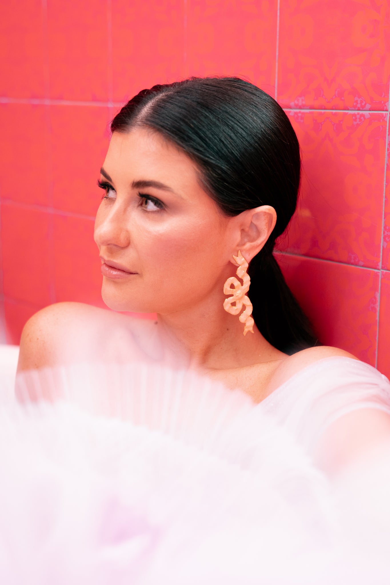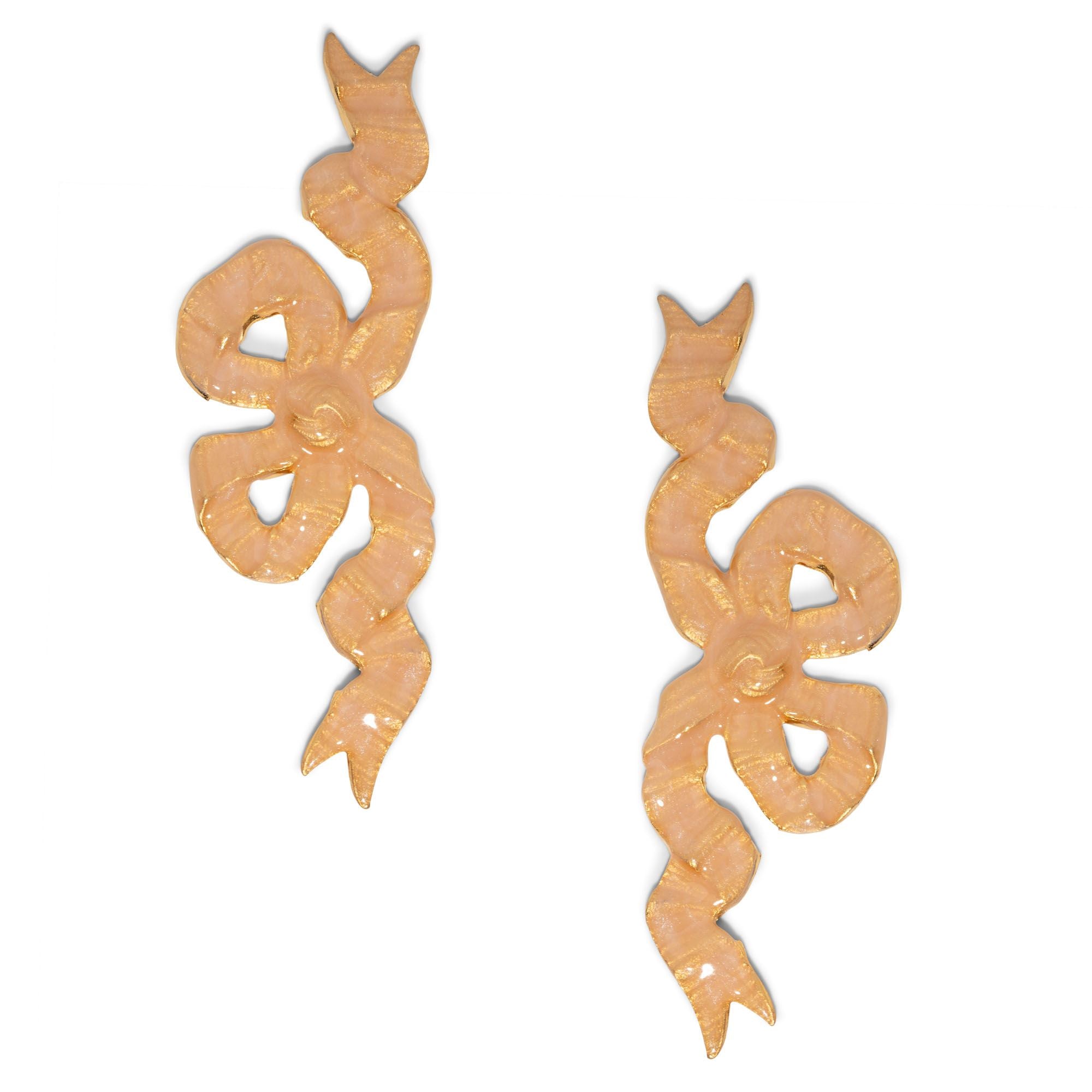 A hand pressed bow with the prettiest details is then hand painted to still show all the gorgeous folds and knots of our Ella bow. At 3”long this style is large on statement but light on the weight. 18k gold finish, nickel free.  Surgical steel posts. Always made in the USA