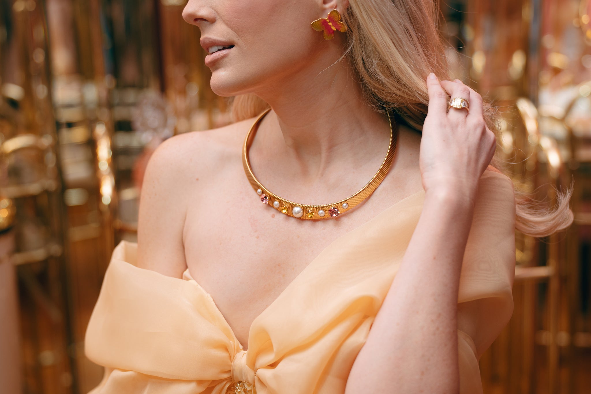 A hand pressed butterfly meets gorgeous hand painting to create an ethereal look for these earrings. 18k gold finish, nickel free. 1” long
